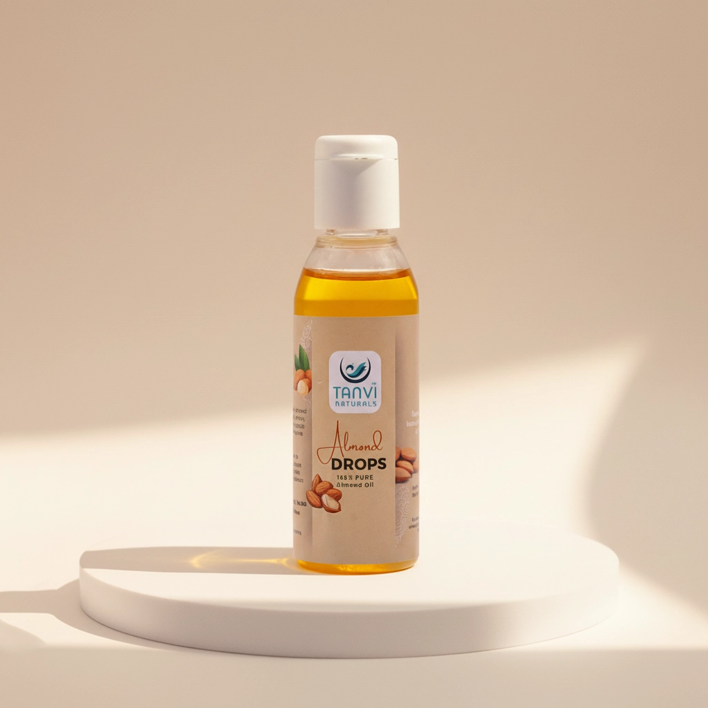 Experience the pure touch of nature with Tanvi Naturals Pure Almond Oil – made with 100% cold-pressed almonds. Rich in antioxidants and vitamin E, our oil deeply nourishes the skin and hair to help maintain soft, smooth, and naturally glowing skin, and healthy, shiny hair.