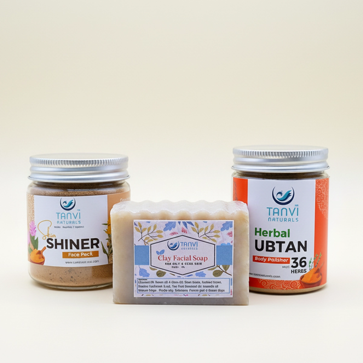 The Glow & Radiance Kit naturally brightens and refreshes your skin. It includes a Herbal Ubtan to exfoliate and polish the body, a Skin Shiner Face Pack for instant facial glow, and a Clay Facial Soap that deeply cleanses and balances the skin.