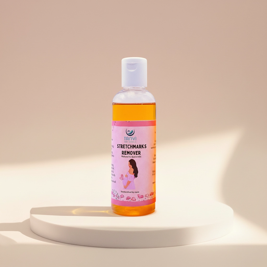 Tanvi Naturals Stretchmarks Oil is a soothing, nurturing blend that helps to fade, soothe, and prevent stretch marks while keeping your skin supple and glowing.